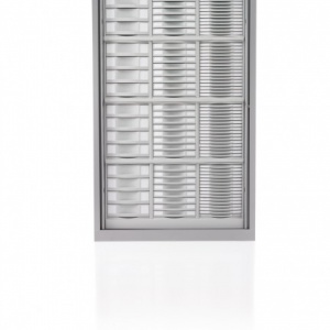 Ce système astucieux permet d’équiper une tablette standard d’armoire à rideaux L.1200mm de tiroirs de classement. Ce type de classement permet de ranger aussi bien des documents que des échantillons ou du petit matériel.