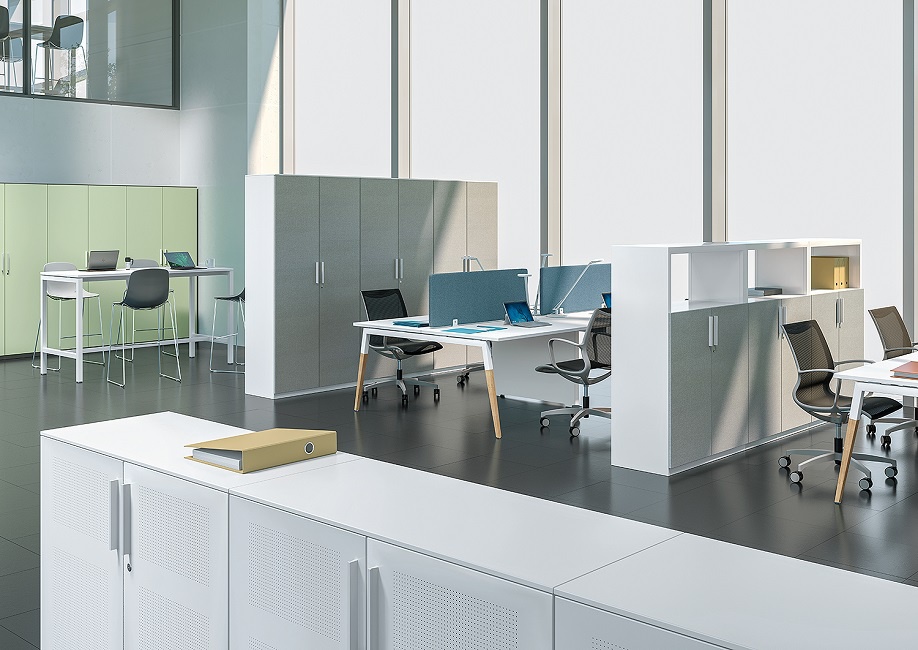 Une gamme complète d’armoires de haute qualité qui offre non seulement une capacité de rangement supérieure de 11% par rapport à l’Armoire à Rideaux, un environnement de travail esthétique et ordonné, un potentiel calorifique grâce à la structure en Acier mais également, selon vos besoins, un confort acoustique ou la chaleur du Bois.