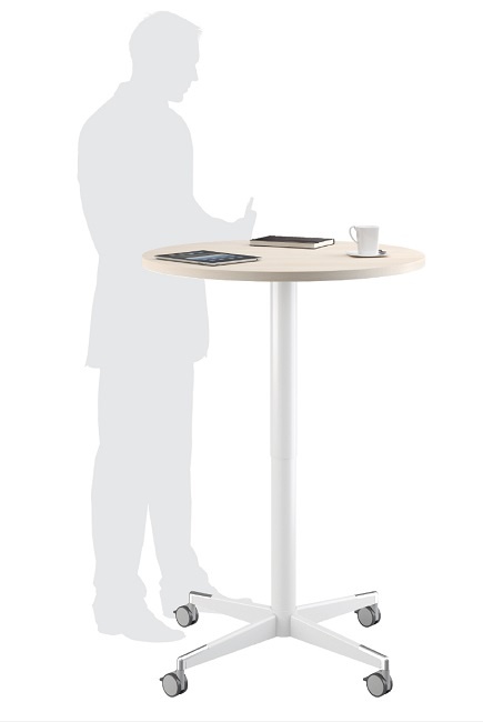 Le réglage s’effectue simplement en activant la poignée fixée sous le plateau. Les réunions improvisées peuvent dorénavant s’organiser partout, assis ou debout, c’est la table incontournable par excellence.